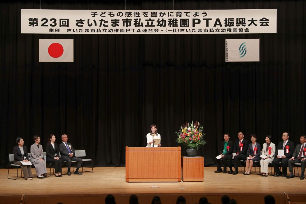 加盟園にお子さまを通わせている保護者を対象に、PTA振興大会を開催いたしました。 第1部式典では清水市長・帆足議長・竹居教育長・村井議員の奥様より温かいお言葉をいただきました。 第2部記念講演は「おかあさんといっしょ」第16代歌のお姉さんの神崎ゆう子先生をお招きしました。 -